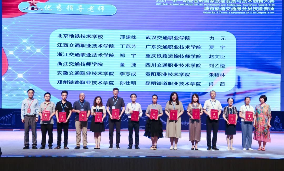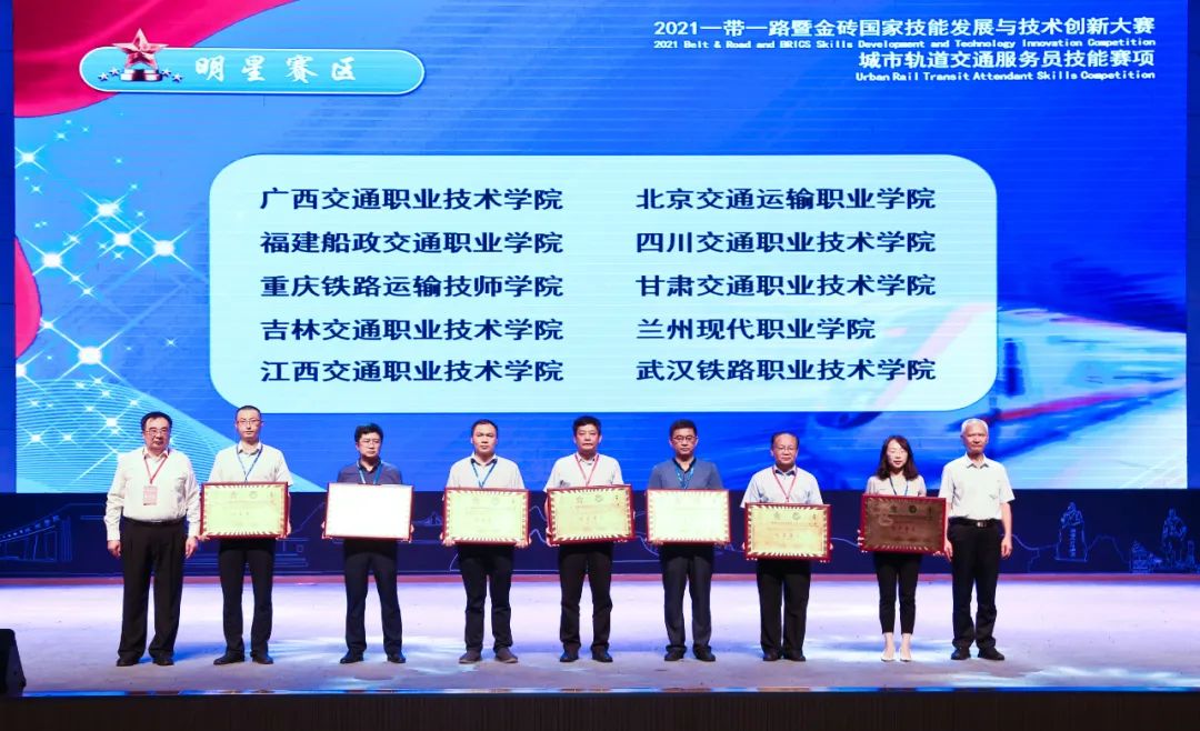 本次2021金砖大赛城轨服务员赛项成功填补了金砖大赛系列赛事轨道交通领域的空白。全国26个赛区175所院校近2万余名选手积极参与了预赛,决赛更是开创了疫情形势下的云端竞赛新模式,最终诞生了42名一等奖选手、81名二等奖选手、123名三等奖选手和优秀选手、优秀指导老师、明星赛区若干。米乐官网副院长杨甲奇代表学院领受“明星赛区”奖牌,刘乙橙老师被授予“优秀指导老师”称号,城市轨道交通运营管理专业20级学生黄星月作为一等奖获奖选手代表发言。本次大赛实现了赛事规模大、竞技水平高、宣传效果好、促校企合作、展职教风采的预期目标,对行业基座式技能人才培养和交通强国建设有着重要的现实意义和战略意义。