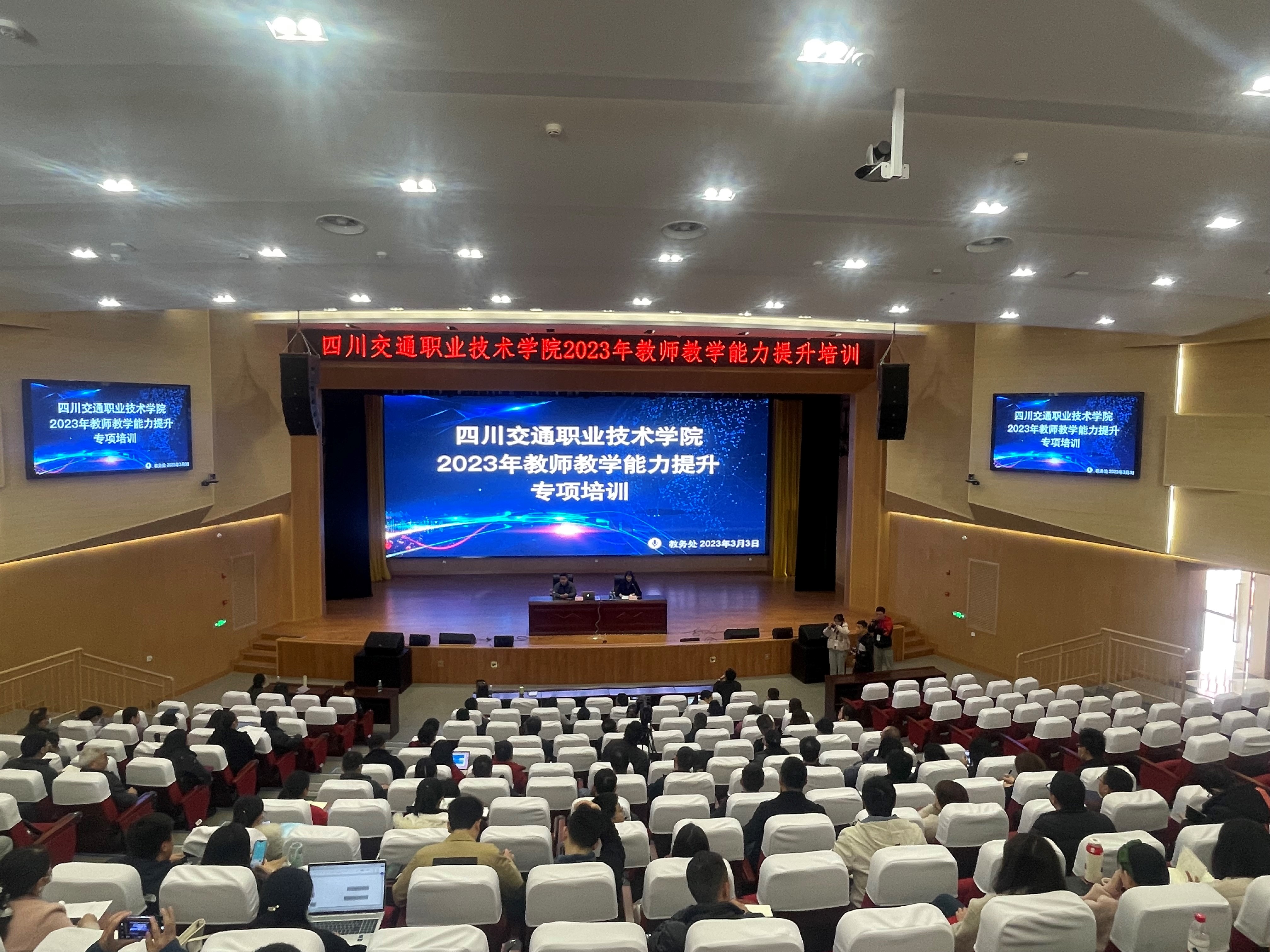 本次培训由学院副院长杨桦主持,各教学部门教学副主任、教研室主任、专业带头人、骨干教师、教师大赛参赛团队团体成员、近5年新进教师等150余位教师现场聆听。