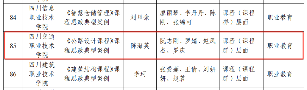 近日,四川省教育厅公布了第二批高等学校课程思政标杆院(系)和课程思政典型案例认定结果:学院信息工程系被认定为第二批高等学校课程思政标杆院(系),道路与桥梁工程系申报的《公路设计》课程思政典型案例成功入选第二批高等学校课程思政典型案例。