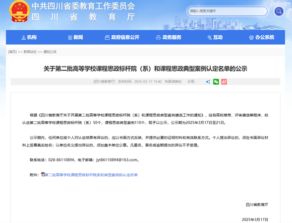 学院两项入选四川省第二批课程思政标杆院(系)和课程思政典型案例