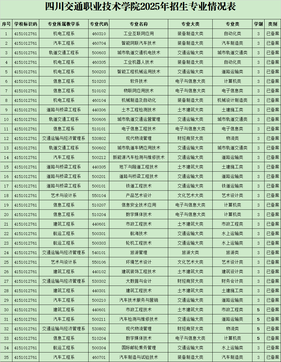 学院现有11个二级教学单位,由9个教学系和公共课教学部、马克思主义学院组成。2025年,开办招生专业38个,其中三年制高等职业教育专科专业34个,五年制一贯制联合办学专业4个,学院各系及专业分布情况,如表1所示,当年新增招生专业3个,停招专业2个,如表2所示。