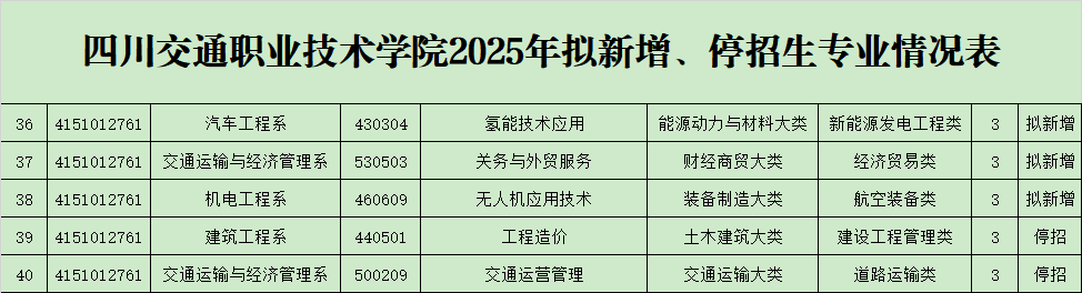 表2 MILE米乐官方网站2025年拟新增、停招生专业情况表
