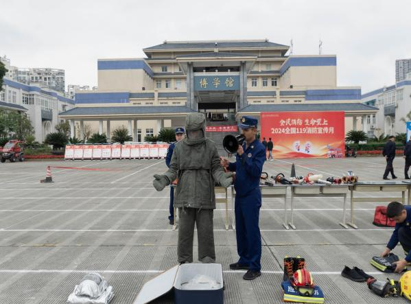 为进一步提高米乐官网师生消防安全素养,增强逃生自救能力,提升学院各部门抵御火灾风险的能力。11月12日,学院保卫处在博学馆广场前组织开展主题为“全民消防、安全至上”消防宣传活动。学院各系安全员、分管安全的负责人、各系学生代表、食堂人员(含教工食堂、学生食堂、商户)代表、旅游实训基地、义消队员、民兵组、校卫队共计约600余人参加活动。